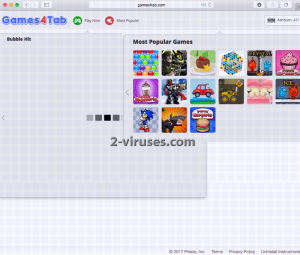 Games4Tab.com virus - How to remove January 18, 2017 By Giedrius Majauskas Do not fall into a trap, set by devious hackers. Games4Tab.com platform for searching is not a reliable tool to exploit in order to find information, photos or other online material. If you feel like going on a trip to various types of sites, you should be convinced that you are accessing them via a trustworthy source. It is hard to say whether Games4Tab.com network is not associated with vendors or sites that are promoting their products with deceitful strategy in their minds. Indicating that all websites, made available via Games4Tab.com virus, are going to invite you over to the dark side is not a righteous statement. We are much more comfortable with a simple warning about this domain and misleading material than can be found on it. Stepping into websites that are interested in more than generation of their web traffic might actually lead to an infection with malware. In addition to that, you might allow tracking cookies be placed into your hard drive. This means that a specific site will be able to monitor your online activity: if it turns out to be a cookie that belongs no an ad-based application, then you might start receiving random third-party ads during your browsing. Games4Tab.com virus can also show similar symptoms by making pop-ups pop, banners appear and new windows overlay with your visited webpages. Games4Tab.com virus and its journey to success Symptoms of an infection with a browser hijacker parasite like Games4Tab.com virus are going to be named in this paragraph. One of the primary changes that is implemented: the sudden shift of your browsers’ settings. It might appear that this action was done without the users’ permission, but occasionally, people agree to permit a browser hijacker to begin its activity. Most of the times the user is not aware that he/she is agreeing with such terms and accidentally misses places that mentioned them. For this reason, we are always reminding our users to be cautious, read EULA documents and never install add-ons, browser extensions that are not approved by IT specialists. If Games4Tab.com virus is being opened as your home page, default search provider and new tab page, there is almost no doubt that this browser hijackers had slithered in. Additionally, as we have indicated before, virus is going to display an increased amount of advertisements (this feature is not only annoying, but possibly distributing malicious content). Most of the promotions presented inform users about solid prizes, lotteries, surveys, sales, one-time-deals or other material that easily catches an overly-materialistic eye. Do not believe such advertisements as they are have a tendency to be fake (and malware-laden). If you do not have an intention of having your activity secretively monitored by an unknown source, you should not keep Games4Tab.com virus in your device. Tracking cookies are small files, but their significance is huge. If hackers are aware of your online activity, they can attack you with suitable material. In addition to that, browser hijackers are known to gain control over users’ downloads. For that reason, it is possible that Games4Tab.com virus is going to install more malware. Infiltration of Games4Tab.com virus You can download Games4Tab.com virus together with other applications. If you are installing a free program, please make sure that it is reliable and won’t trigger any security issues. After Setup Wizards are launched, select advanced/custom modes to continue. This option provides users with more useful information and allows them to read EULA documents and prevent additional programs from being installed. In addition, stop visiting domains that are questionable. It is possible that they will show you tons of ads that will be prepared to begin a drive-by-download after you click on them. This is an especially frightening feature: we are sure that you do not want to download a browser hijacker, or worse: a ransomware virus. If you want to remove Games4Tab.com virus manually, you can follow our advises below. You will see elaborate instructions. Find your browser and follow the steps towards elimination. If you are more interested in a care-free, automatic removal, you have to use an anti-malware tool. Choose the one you are comfortable with. If your mind is lost, try Spyhunter or Hitman. Games4tab Com Virus quicklinksGames4Tab.com virus and its journey to successInfiltration of Games4Tab.com virusAutomatic Malware removal toolsManual removal of Games4Tab.com virusHow to remove Games4Tab.com virus using Windows Control PanelHow to remove Games4Tab.com virus from macOSAutomatic Malware removal tools Download Spyhunter for Malware detection(Win) Note: Spyhunter trial provides detection of parasites and assists in their removal for free. limited trial available, Terms of use, Privacy Policy, Uninstall Instructions, Download Combo Cleaner for Malware detection(Mac) Note: Combo Cleaner trial provides detection of parasites and assists in their removal for free. limited trial available, Terms of use, Privacy Policy, Uninstall Instructions, Refund Policy , Manual removal of Games4Tab.com virus How to remove Games4Tab.com virus using Windows Control Panel Many hijackers and adware like Games4Tab.com virus install some of their components as regular Windows programs as well as additional software. This part of malware can be uninstalled from the Control Panel. To access it, do the following. Start→Control Panel (older Windows) or press Windows Key→Search and enter Control Panel and then press Enter (Windows 8, Windows 10). Choose Uninstall Program (if you don't see it, click in the upper right next to "View by" and select Category). Go through the list of programs and select entries related to Games4Tab.com virus . You can click on "Name" or "Installed On" to reorder your programs and make Games4Tab.com virus easier to find. Click the Uninstall button. If