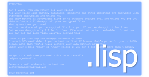 Lisp Ransomware - How to remove November 24, 2020 By Giedrius Majauskas Lisp is file-locking ransomware that renames those files by adding a second extension, “lisp”. In addition, it brings spyware and adware to the infected computer. Lisp is part of the Djvu ransomware family, together with Sglh, Vvoa, and other infections. Lisp Ransomware quicklinksHow Lisp ransomware worksAdditional malwareFile encryptionCan the files be restored?How to remove Lisp ransomwareImportant -- edit the hosts file to unblock security websitesFind and edit the hosts fileDownload and run the antivirus programAutomatic Malware removal toolsHow to recover Lisp Ransomware encrypted files and remove the virusStep 1. Restore system into last known good state using system restore1. Reboot your computer to Safe Mode with Command Prompt:2.Restore System files and settings.Step 4. Use Data Recovery programs to recover Lisp Ransomware encrypted files Download Spyhunter(Win) Note: Spyhunter trial provides detection of parasites and assists in their removal for free. limited trial available, Terms of use, Privacy Policy, Uninstall Instructions, Download Combo Cleaner(Mac) Note: Combo Cleaner trial provides detection of parasites and assists in their removal for free. limited trial available, Terms of use, Privacy Policy, Uninstall Instructions, Refund Policy , Lisp in short: Classification Ransomware. How Lisp affects the computer It breaks files, it installs other malware, it deletes backup data. How to restore the files Restore them from your backup, recover deleted data, repair the files, use the decryptor. Removing Lisp Remove Lisp and other malware with antivirus tools (Spyhunter, others) after unblocking security sites and installing required updates. How Lisp ransomware works Additional malware Lisp gets detected by antivirus programs by names like Trojan, Ransom, Kryptik, Malware, and others: Virustotal.com. Lisp spreads with pirated software. People who use unreliable websites to illegitimately download free software risk getting malware on their computers. In addition, those infected programs also bring spyware and adware. These malicious programs steal private information (such as the passwords saved in web browsers) off of the infected computer and force browsers to display additional ads. Besides installing all this malware, Lisp also makes some unwanted changes in the computer: It deletes restore points and shadow volume copies. It blocks various cybersecurity websites. It stops antivirus processes and deletes some of their required files. It may disable the Task Manager, Registry Editor, and other tools that can be used to stop malware. Not to mention its main feature – breaking all the files that it can find. Overall, Lisp can do a lot of harm to the infected computer. File encryption After a Lisp attack, your files may be a bit broken: They can’t be opened. Most of them, at least. Their contents are full of random symbols. You can see that if, for example, you force a text file to open in your Notepad. The names of these files have been changed to include a second file type extension, “lisp”. For instance, “song.mp3” becomes “song.mp3.lisp”. Lisp uses cryptography to break user files. It secures them with a password and then encrypts the password. As a result, it’s impossible to decrypt the files without the decryption key which is only known to the criminals behind Lisp. It is also to guess that key. And it is extremely unlikely that you share this key with another victim of Lisp ransomware. Nowadays, ransomware viruses have started to steal files before encrypting them. However, it is unlikely that Lisp does this. Data theft is used against big companies and organizations, while Lisp ransomware targets individual PC users. Can the files be restored? Obviously, Lisp needs to be deleted, but it won’t bring your files back. Can you get your files back without having to pay a $490/$980 ransom to the criminals behind Lisp? If you had a backup of your data, then that’s all you need. Just remove Lisp and the other malware first. You can delete the encrypted files, as well. If you don’t have backups, then your options are not great: Use a data recovery program to restore backup data and other data that Lisp deleted. These programs can detect and restore some deleted files, but it’s complicated. With continued use of the infected drive, the chances of restoring any deleted data go down. Repair the files yourself. Lisp encrypts some files only partially – the larger a file, the more data on it remains unencrypted and can be recovered. Although, it is complicated. If there’s a chance that your files can be decrypted by using someone else’s decryption key, the Emsisoft decryptor will tell you. Don’t fall for scammers that promise to fix your files for a fee. Decryption is impossible without the correct decryption key, which is only known to the cybercriminals behind Lisp. Djvu ransomware is well known and well studied, and sadly, there is no miracle cure for it. How to remove Lisp ransomware To avoid any more files being encrypted, Lisp ransomware needs to be deleted. If it came with other files, those files need to be deleted. The additional malware that came with Lisp also needs to be removed. Use an antivirus program that you trust (such as Spyhunter, but make sure that it’s got the latest updates. Only the encrypted files – those with the “.lisp” extension – don’t need to be removed, as they’re not dangerous. Important -- edit the hosts file to unblock security websites TL DR : The hosts file is edited to block security sites Before the virus can be removed, it's necessary to fix the hosts file (the file which controls which addresses connect to which IPs). That is the reason the majority of security websites is inaccessible when infected with this particular parasite. This infection edits this file to stop certain websites, including anti-malware download sit