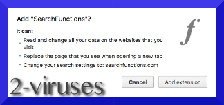 Searchfunctions.com malware - How to remove February 27, 2018 By Giedrius Majauskas Searchfunctions is described as a browser extension that can enhance your web browsing and make your web searches more efficient: “This extension uses search keyword bookmarks and makes it extremely simple to use the popular searchfunctions.com Search Engine”. Unfortunately, the truth is a bit different as this browser extension is categorised as browser hijacker. Don’t get too scared – it is not very dangerous computer virus, yet it can cost you all sorts of problems. In this post we will review all features of Searchfunctions.com and provide you with the best removal methods, so proceed reading. Searchfunctions.com – malicious extension for Google Chrome First of all, you might wonder why we call it “Searchfunctions.com”, if the extension itself is named “Searchfunctions”? Well, that’s because Searchfunctions.com is a website that will be pop-ing up on your web browser if it is infected with this extension, therefore it is the most common symptom that most of the users are looking up. The main reason why we consider this extension to be malicious is its’ distribution methods. A lot of users are complaining that they have never installed this extension on purpose and yet it is successfully operating on the Internet browser. That’s because Searchfunctions.com is traveling as a bundle to other free software that can be downloaded from the Internet. It gets installed by tricking users – some of them are not even aware of the fact that this add-on will be added, while others are forced to believe that this add-on will be somehow beneficial to them. When installed, Searchfunctions virus will automatically make changes on your web browser. It will set new tab page as well as default search engine to www.searchfunctions.com, so this website will appear every time you open a new tab or try to search for something. It is a common practice to all new browser hijackers to hijack only new tab page and stay away from the homepage – Browserbleach.com virus and Findiosearch.com hijacker are operating the same way. Even though that looks like not a big deal, it can cause you some problems if you just keep using it. From now on all your searches will be executed through Searchfunctions.com search. Most of the results there are relevant and safe to use, yet it can cause insert some sponsored links leading to unreliable websites and trick you this way. In addition to that, your searches are likely to be recorded. So if some of your sensitive information is leaked to the search, it can also be leaked to third parties that are affiliated with Searchfunctions.com. Last but not least – Searchfunctions.com might infiltrate other infections to your computer. The fact that this malware was able to find the way into your system, indicates problems regarding the security of your computer – its’ protection i really weak. Now, to get rid of this malware once and for all, you should follow this quick step-by-step tutorial: Right click on the SearchFunctions icon on your web browser and select “Remove from Chrome”; On the next window click “Yes”; Download and scan your computer with Spyhunter anti-malware application; If anti-malware software failed to detect malware on your system, it is safe to continue using it. We also recommend to keep one of those anti-malware programs installed all the time as it will ensure that infections like this won’t be able to enter your computer in the future. Automatic Malware removal tools Download Spyhunter for Malware detection(Win) Note: Spyhunter trial provides detection of parasites and assists in their removal for free. limited trial available, Terms of use, Privacy Policy, Uninstall Instructions, Download Combo Cleaner for Malware detection(Mac) Note: Combo Cleaner trial provides detection of parasites and assists in their removal for free. limited trial available, Terms of use, Privacy Policy, Uninstall Instructions, Refund Policy , Searchfunctions.com malware facts Type: Browser Hijacker Download Spyhunter for Malware detection(Win) Note: Spyhunter trial provides detection of parasites and assists in their removal for free. limited trial available, Terms of use, Privacy Policy, Uninstall Instructions, Download Combo Cleaner for Malware detection(Mac) Note: Combo Cleaner trial provides detection of parasites and assists in their removal for free. limited trial available, Terms of use, Privacy Policy, Uninstall Instructions, Refund Policy , TOC Leave a ReplyYour email address will not be published. Required fields are marked *Comment * Name * Email * Website