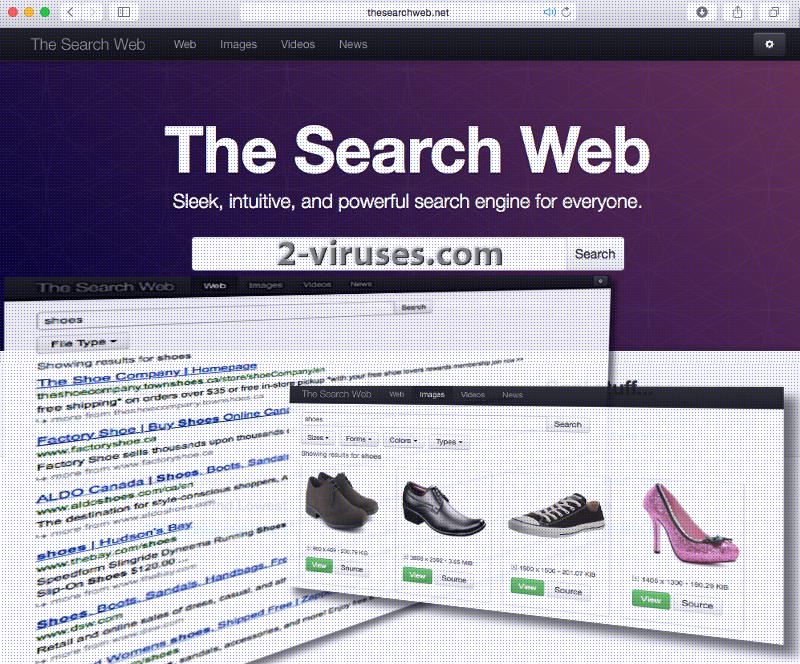 Thesearchweb.net virus - How to remove March 7, 2017 By Giedrius Majauskas Thesearchweb.net is a phony search engine and we have detected similar samples that featured a purple background. Signs that make us question this searching facility are not hard to detect. If you enter search queries, a ridiculously small amount of links gets generated. If you click a button “Load more”, the moving dots never conclude the process. Additionally, users are unable to read Terms and Conditions and a Privacy Policy as the search engine has shortcuts to these documents, but the destination links do not produce actual agreements. For example, if you select “Privacy Policy”, you will redirected to a page with the following statements: “Here comes your privacy policy info… This stuff really matters, and shouldn’t be neglected :)”. Yes, this information is extremely important, but Thesearchweb.net virus does not bother to generate an appropriate document. Since you have no idea the rules and tendencies of this search platform, you are discouraged from utilizing it. Things to consider before using Thesearchweb.net search engine We are convinced that people would not voluntarily choose to utilize Thesearchweb.net. For this reason, this search engine has to get creative. If consumers won’t come to it, the network will come to them. Due to this annoying habit of invading users’ browsers, Thesearchweb.net virus is doomed to be identified as a browser hijacker. These malware parasites are extremely common to come by. Sample will probably target all of the popular applications for browsing, meaning that almost anyone can notice it in the selections of home pages, default search providers and new tab pages. Such a modification should not be difficult to notice. As soon as you launch your browser, your home page is expected to be Thesearchweb.net if its browser hijacker managed to implement its changes. Features that are related with third-party content can be predicted, but not clearly distinguished. Thesearchweb.net virus does not produce an EULA document, explaining its association with promotional content and the links, generated in the results pages. Does it pre-check the material it agrees to endorse visitation to? We have a bad feeling that Thesearchweb.net virus does not care about safety of its users and does not produce necessary documents on purpose. This deceptive trick might be done to confuse users and conceal important information from them. This search platform can promote all sorts of unreliable content: as a consequence, users can unknowingly enter advertised sites and end up with a malware parasite. Thesearchweb.net virus can also be the culprit when it comes to spying on your online activity. Browser hijackers can enter devices secretively and will place tracking cookies into hard drives just as discretely. Users will not really be able to tell that their activity is being monitored. One of the subtle hints might be that the advertisements that get displayed are more up to speed with your individual likings. How does Thesearchweb.net virus infect computer systems? As we have already warned you, browser hijackers like Thesearchweb.net virus can become a part of your system if you do not follow the latest security trends. You should be aware of the dangers that might arise if you continue to browse in unreliable domains or react to suspicious third-party promotional content. Remember to never download software from unreliable sources, like file-sharing domains that might be filled with malicious apps. In addition to that, download patches/updates for the programs you already own only from their original developers. If you will decide to install a free application, pick advanced or custom modes for its Setup Wizard. Make sure to refuse offers for any additional software that might be recommended. Spyhunter and Malwarebytes all have a clear purpose: to clean computer devices from malware. If they detect parasites like Thesearchweb.net virus, these applications will not suffer from obstacles in their removal. Main points to perform a manual removal are also appended at the end of this article. Thesearchweb Net Virus quicklinksThings to consider before using Thesearchweb.net search engineHow does Thesearchweb.net virus infect computer systems?Automatic Malware removal toolsManual removal of Thesearchweb.net virusHow to remove Thesearchweb.net virus using Windows Control PanelHow to remove Thesearchweb.net virus from macOSAutomatic Malware removal tools Download Spyhunter for Malware detection(Win) Note: Spyhunter trial provides detection of parasites and assists in their removal for free. limited trial available, Terms of use, Privacy Policy, Uninstall Instructions, Download Combo Cleaner for Malware detection(Mac) Note: Combo Cleaner trial provides detection of parasites and assists in their removal for free. limited trial available, Terms of use, Privacy Policy, Uninstall Instructions, Refund Policy , Manual removal of Thesearchweb.net virus How to remove Thesearchweb.net virus using Windows Control Panel Many hijackers and adware like Thesearchweb.net virus install some of their components as regular Windows programs as well as additional software. This part of malware can be uninstalled from the Control Panel. To access it, do the following. Start→Control Panel (older Windows) or press Windows Key→Search and enter Control Panel and then press Enter (Windows 8, Windows 10). Choose Uninstall Program (if you don't see it, click in the upper right next to "View by" and select Category). Go through the list of programs and select entries related to Thesearchweb.net virus . You can click on "Name" or "Installed On" to reorder your programs and make Thesearchweb.net virus easier to find. Click the Uninstall button. If you're asked if you really want to remove the program, click Yes. In many cases anti-malware programs are better at detecting related parasites, thus I recommend ins