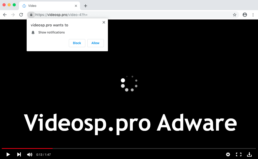 Videosp.pro attacks Google Chrome, Mozilla Firefox, Opera and other popular browsers. Once the pop-up initially appears it does not cause any damage until people start fulfilling its misleading guidelines. Videosp.pro indicates that in order to watch the certain video you should click on “Allow” to enable video playback. The pop-up may specify some other tricky instructions.