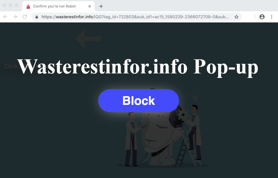 Wasterestinfor.info Pop-up - How to remove June 13, 2019 By Giedrius Majauskas Are you distracted by the wasterestinfor.info pop-ups randomly attacking your screen? Unfortunately, the problem you currently experience with your browser may cause other dramatic consequences for your computer. The research of wasterestinfor.info leads the majority of computer security blogs to the conclusion that this particular website is directly involved in browser hijacking. This results in ongoing web push notifications to bombard your screen and preventing you from performing important tasks online. Wasterestinfor.info replaces markably.info, substand.pro and seplumming.pro pop-ups. Wasterestinfor Info Pop Up quicklinksThe purpose of wasterestinfor.info pop-upsHow to block wasterestinfor.info?Automatic Malware removal toolsHow to remove Wasterestinfor.info Pop-up using Windows Control PanelHow to remove Wasterestinfor.info Pop-up from macOS Download Spyhunter(Win) Note: Spyhunter trial provides detection of parasites and assists in their removal for free. limited trial available, Terms of use, Privacy Policy, Uninstall Instructions, Download Combo Cleaner(Mac) Note: Combo Cleaner trial provides detection of parasites and assists in their removal for free. limited trial available, Terms of use, Privacy Policy, Uninstall Instructions, Refund Policy , All these websites are similar in their intrusive behavior and the malicious goals they try to reach while enabled. It is absolutely certain that removing wasterestinfor.info and fixing your other browser problems is very important to prevent other negative impacts on your computer in general. The purpose of wasterestinfor.info pop-ups There are several advertising companies that promote their content through wasterestinfor.info. When your browser is redirected to the third-party websites advertised by wasterestinfor.info, these companies obtain their revenue. For this reason, the pop-up acts in a very aggressive way when it tries to make you allow its web push notifications. Below please find some of its tricky alerts most commonly displayed in browsers: click Allow to prove you are not a robot; click Allow to continue; click Allow to watch the video. Similarly, wasterestinfor.info may be presented as some age verification to confirm that you are 18+ to be able to watch specific content. However, when users mistakenly click on the “Allow” button the browser gets hijacked immediately. This results in numerous pop-up ads permanently attacking the screen in its various parts. The ads may be presented as rectangular advertisement banners or as small pop-up boxes containing links to third-party resources. Wasterestinfor.info may also switch your browser into the full-screen mode to make it impossible for you to research the problem more thoroughly. It is absolutely certain that the companies that stand behind wasterestinfor.info distribution refer to a lot of illegal and deceptive practices to hijack the browsers. How to block wasterestinfor.info? Wasterestinfor.info pop-ups are very dangerous considering the redirections they cause. It is quite unlikely that they will lead you to decent resources. Instead, you will keep encountering numerous fake alerts demanding from you to perform suspicious Adobe Flash Player or Java updates, scary pop-ups promoting rogue security applications, websites collecting your personal information illegally and other hazardous places online. Despite the fact that the wasterestinfor.info push notifications were enabled as a result of you clicking on Allow as instructed, there was some reason why you ended up facing the pop-up. We are absolutely sure that it wasn’t your direct decision. It is possible that you were redirected to wasterestinfor.info as a result of clicking on some suspicious link that could be contained in spam emails, or as a result of visiting hacked websites. The presence of adware within your computer is another possible explanation of how wasterestinfor.info could attack your screen. In fact, when your browser functions in a suspicious manner and redirects you to other resources beyond your control, then there is a probability that the system is indeed damaged by the adware. We recommend that you do not loiter with removing the wasterestinfor.info pop-ups. Undertake some manual measures by accessing the Control Panel and checking the list of available applications. Once you identify the programs that do not look reliable, remove them right away, especially if you do not remember installing them personally. However, the best solution, in this case, is to entrust the process of system cleanup to the reliable anti-malware software, such as Spyhunter that can effectively discover other leakages in system security, detect hidden malware and remove it in a proper way. Automatic Malware removal tools Download Spyhunter for Malware detection(Win) Note: Spyhunter trial provides detection of parasites and assists in their removal for free. limited trial available, Terms of use, Privacy Policy, Uninstall Instructions, Download Combo Cleaner for Malware detection(Mac) Note: Combo Cleaner trial provides detection of parasites and assists in their removal for free. limited trial available, Terms of use, Privacy Policy, Uninstall Instructions, Refund Policy , How to remove Wasterestinfor.info Pop-up using Windows Control Panel Many hijackers and adware like Wasterestinfor.info Pop-up install some of their components as regular Windows programs as well as additional software. This part of malware can be uninstalled from the Control Panel. To access it, do the following. Start→Control Panel (older Windows) or press Windows Key→Search and enter Control Panel and then press Enter (Windows 8, Windows 10). Choose Uninstall Program (if you don't see it, click in the upper right next to "View by" and select Category). Go through the list of programs and select entries related to Wasterestinfor.info Pop-up . You can click on "