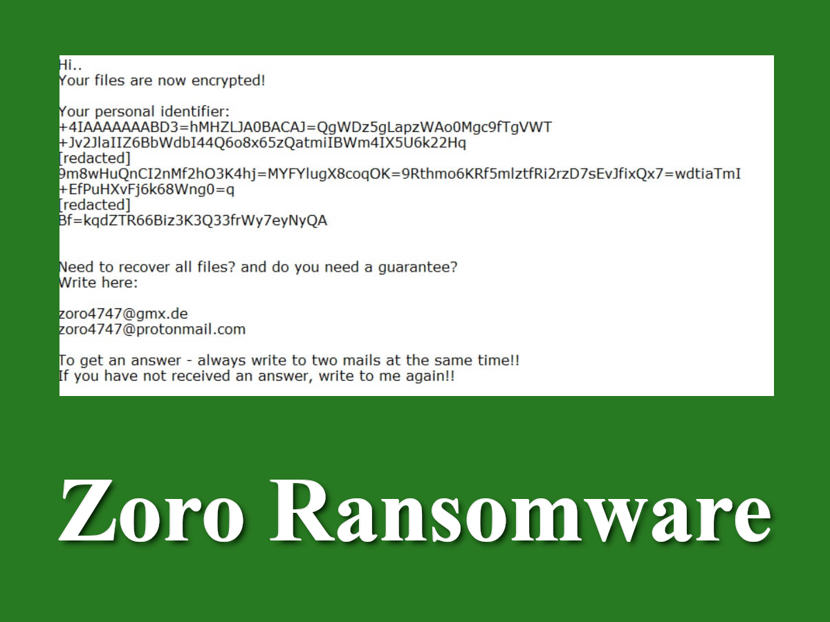 Zoro Ransomware - How to remove May 10, 2019 By Sarunas Klenauskas Zoro ransomware comes from a family of notorious Scarab viruses and can cost you a lot. Since it is a ransomware, it will straight up lock your personal files and force you to pay the ransom in order to receive decryption key which would allow you to get them back . Zoro Ransomware quicklinksHow Zoro Encrypts FilesRemove Zoro Virus and Recover Your FilesAutomatic Malware removal toolsHow to recover Zoro Ransomware encrypted files and remove the virusStep 1. Restore system into last known good state using system restore1. Reboot your computer to Safe Mode with Command Prompt:2.Restore System files and settings.Step 4. Use Data Recovery programs to recover Zoro Ransomware encrypted files Download Spyhunter(Win) Note: Spyhunter trial provides detection of parasites and assists in their removal for free. limited trial available, Terms of use, Privacy Policy, Uninstall Instructions, Download Combo Cleaner(Mac) Note: Combo Cleaner trial provides detection of parasites and assists in their removal for free. limited trial available, Terms of use, Privacy Policy, Uninstall Instructions, Refund Policy , We definitely do not recommend to follow instructions insisted by cyber criminals behind Zoro ransomware. It’s obvious that you need your files back as they are really important to you and that’s why you might be frustrated and think about actually paying the ransom. However, there are other methods to solve this problem and get your files back, so you should go for clever alternatives instead. In this article, we will provide you with full instructions on how to effectively eliminate Zoro ransomware from your computer and retrieve your locked files, so keep reading if you are interested. How Zoro Encrypts Files There are a lot tof ransomware viruses associated with the main Scarab virus, such as Scarab-Glutton or Scarab-XTBL and they all operate in a similar manner. To force you into paying the ransom they lock your files up by emloying some kind of cryptography (encryption algorithm). In most cases very complicated, military grade algorithm is selected, so there aren’t a lot of opportunities to reverse the process and decrypt those files by your own. Unless, you have a special decryption key that can do that. Unfortuanatelly, that key is stored on a remote server completely controlled by cyber criminals, so the only possible way to get it is to contact them and pay the ransom. They use this privillege to manipulate users and force them into paying. So once inside of your system, Zoro ransowmare will immediately start a scanning process and detect all files that could be encrypted. Right after that it will encrypt them and add unique .zoro extension to every encrypted file. After this, you will be no longer capable of opening or using those files. Also, that’s where the name of Zoro virus comes from. When the encryption process is over, Zoro will place a file called “!!! RESTORE DATA !!!.TXT” directly on your desktop. It is a ransom note and it goes like this: Hi.. Your files are now encrypted! Your personal identifier: +4IAAAAAAA***7eyNyQA Need to recover all files? and do you need a guarantee? Write here: [email protected] [email protected] To get an answer – always write to two mails at the same time!! If you have not received an answer, write to me again! So clearly those crooks behind Zoro ransomware seek to get in touch with you. This is a social engineering technique used to actively force users into paying. However, we do not recommend to even contact them. They do not disclose the exact amount that you will need to pay in order to receive decryption key, but even if ransom is relatively small, it’s not worth paying it. As we have already mentioned, there are other, better methods to solve this problem and get your files back. Remove Zoro Virus and Recover Your Files First thing you need to do in this particular situation – completely eliminate Zoro virus itself and all files associated with it. Even though it won’t unlock your encrypted files, you must do it before moving further to decryption or file restore process. To do this, you should scan your system with Spyhunter. Either one of those tools should immediately detect and remove Zoro ransomware. Now, when the virus is completely removed, you can perform a system restore. This will turn your system back in time and your files should be good to use once again. Unfortunately, this is only possible if you have a valid backup copy of your hard drive. Please feel free to seek further assistance in the detailed guide provided below or ask us a question in the comments section. Automatic Malware removal tools Download Spyhunter for Malware detection(Win) Note: Spyhunter trial provides detection of parasites and assists in their removal for free. limited trial available, Terms of use, Privacy Policy, Uninstall Instructions, Download Combo Cleaner for Malware detection(Mac) Note: Combo Cleaner trial provides detection of parasites and assists in their removal for free. limited trial available, Terms of use, Privacy Policy, Uninstall Instructions, Refund Policy , How to recover Zoro Ransomware encrypted files and remove the virus Step 1. Restore system into last known good state using system restore 1. Reboot your computer to Safe Mode with Command Prompt: for Windows 7 / Vista/ XP Start → Shutdown → Restart → OK. Press F8 key repeatedly until Advanced Boot Options window appears. Choose Safe Mode with Command Prompt. for Windows 8 / 10 Press Power at Windows login screen. Then press and hold Shift key and click Restart. Choose Troubleshoot → Advanced Options → Startup Settings and click Restart. When it loads, select Enable Safe Mode with Command Prompt from the list of Startup Settings. 2.Restore System files and settings. When Command Prompt mode loads, enter cd restore and press Enter. Then enter rstrui.exe and press Enter again. Click “Next